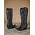 Zwarte leren dameslaarzen met hoge neus - kniehoge sandalen - een gedurfde mode-statement voor muziekfestivals en streetstyle-evenementen