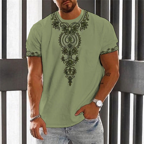 Voor heren Bloemig Grafisch T-shirt Korte mouw T-shirt 3D-afdrukken Strakke ronde hals Overhemd Modieus Ontwerper Etnisch Buiten Dagelijks Sport Wit blauw Bruin Lente zomer Kleding S M L XL 2XL 3XL