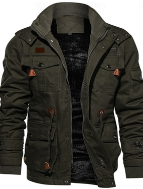 Voor heren Fleecejack Cargo-jack Windjack Thermisch Warm Casual Militair Buiten Kamperen&Wandelen Geborduurd Afneembare capuchon Katoenen jassen Winter Opstaand Lange mouw Zwart khaki Leger Groen