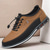 Bruine imitatieleren veterschoenen voor heren met geperforeerde details, casual stijl, comfortabel voor dagelijks gebruik