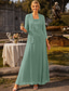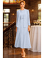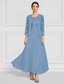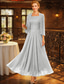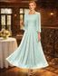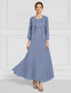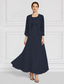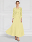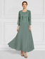 Jurksets Thee Lengte Bruiloft Gast Jurk Moeder van de Bruid Jurk 3/4 Lengte Mouw Vierkante Hals Elegante Eenvoudige Bruiloft Gast met Effen Kleur