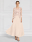 Jurken Jurk pak Over de knie Bruiloft gast jurk Moeder van de bruid jurk 3/4 mouw Hoge nek Met sieraad Elegant Vintage Formeel Bruiloft gast Stretchstof met Kant Pareldetails