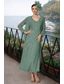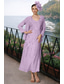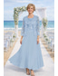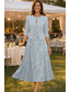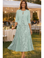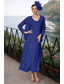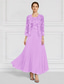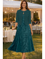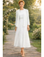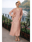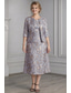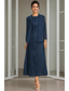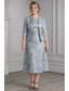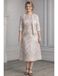 3-delig pak Over de knie Midi-jurk Moeder van de bruid jurk Lange mouw Ronde hals Elegant Vintage Formeel Bruiloft gast Semi formeel Chiffon Jacquard Wrap inbegrepen met Cape Bloem