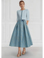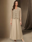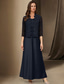 Twee Stuks A-Lijn Jurk Sets Thee Lengte Bruiloft Gast Jurk Moeder van de Bruid Jurk 3/4 Lengte Mouw V Hals Hoge Hals Elegant Vintage Formeel met Effen Kleur