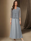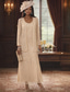 Tweedelig Jurk pak Tot de enkel Bruiloft gast jurk Moeder van de bruid jurk Lange mouw Strakke ronde hals Elegant Bruiloft gast Kerk (83 Chiffon met Kant Borduurwerk
