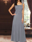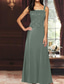 Jurken Sets Vloerlengte Bruiloft Gast Jurk Moeder van de Bruid Jurk Lange Mouw Vierkante Hals Elegante Feest Eenvoudige Bruiloft Gast met Effen Kleur