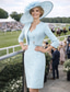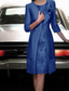 Strak kolom Tot de knie Bruiloft gast jurk Moeder van de bruid jurk 3/4 mouw Met sieraad Vintage Grote maten Bruiloft gast Satijn Kant Jas Jurken met Appliqués