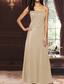 Tweedelig A-lijn Tot de grond Bruiloft gast jurk Moeder van de bruid jurk Mouwloos Met sieraad Elegant Bruiloft gast Bruiloft Chiffon Wrap inbegrepen met Gelaagde ruches Effen kleur