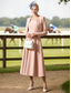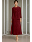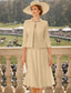Tweedelig A-lijn Tot de knie Bruiloft gast jurk Moeder van de bruid jurk Mouwloos Lange mouw Ronde hals Elegant Eenvoudig Luxueus Formeel Bruiloft gast Chiffon met Gelaagde ruches
