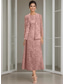 Jurken Jurk pak Over de knie Bruiloft gast jurk Moeder van de bruid jurk 3/4 mouw Met sieraad Elegant Vintage Formeel Bruiloft gast Stretchstof met Kant Pareldetails
