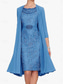 Tweedelig A-lijn Over de knie Bruiloft gast jurk Moeder van de bruid jurk Mouwloos 3/4 mouw Strakke ronde hals Vierkante hals Elegant Eenvoudig Formeel Kentucky Derby Semi formeel Jacquard Korte Jas