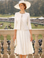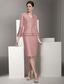 Tweedelig Strak kolom Jurk pak Tot de knie Bruiloft gast jurk Moeder van de bruid jurk 3/4 mouw Met sieraad Elegant Bruiloft gast Kerk (83 Chiffon Satijn Kant Jas Jurken met Appliqués