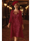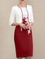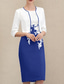 Tweedelig Strak kolom Tot de knie Bruiloft gast jurk Moeder van de bruid jurk 3/4 mouw Met sieraad Elegant Formeel Bruiloft gast Kerk (83 Chiffon Kant Wrap inbegrepen Jas Jurken met Kralen Appliqués