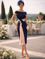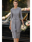 Tweedelig Strak kolom Tot de knie Bruiloft gast jurk Moeder van de bruid jurk Mouwloos Schouderafhangend Elegant Bruiloft gast Formele avonden Bruiloft Stretchstof Korte Jas Jurken met Plooien