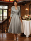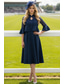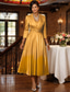A-lijn Jurk pak Over de knie Bruiloft gast jurk Moeder van de bruid jurk Lange mouw 3/4 mouw Overhemdkraag Elegant Vintage Eenvoudig Formeel Bruiloft gast Satijn met Strik(ken) Gelaagde ruches
