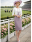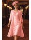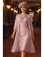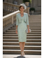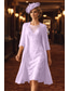 Tweedelig Strak kolom Tot de knie Bruiloft gast jurk Moeder van de bruid jurk Halve mouw Stomp Hals Bruiloft gast Kerk (83 Satijn Kant Korte Jas Jurken met Kant Split voorzijde Kristallen broche