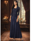 Tweedelig A-lijn Tot de grond Bruiloft gast jurk Moeder van de bruid jurk Lange mouw Vierkante hals Elegant Formeel Bruiloft gast Chiffon Wrap inbegrepen met Kant Lagen Borduurwerk