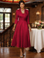 Twee-delige Sheath Kolom Thee Lengte Cocktailjurk Jurk Set Bruiloftsgastenjurk Moeder van de Bruid Jurk Lange Mouw V-Hals Elegant Vintage Feest met Borduursel