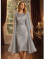 Jurk Sets Knie Lengte Bruiloft Gast Jurk Moeder Van De Bruid Jurk Lange Mouw Hoge Hals Elegante Simpele Bruiloft Gast met Effen Kleur