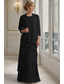 A-lijn 3-delig pak Tot de grond Bruiloft gast jurk Moeder van de bruid jurk 3/4 mouw Vierkante hals Elegant Eenvoudig Luxueus Formeel Bruiloft gast Satijn Kant met Kant Pailletten