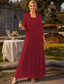 Jurk Sets Vloerlengte Bruiloft Gast Jurk Moeder van de Bruid Jurk Lange Mouwen Vierkante Hals Elegant Eenvoudige Bruiloft Gast met Effen Kleur
