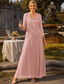 Tweedelig A-lijn Tot de grond Bruiloft gast jurk Moeder van de bruid jurk Korte mouw V-hals Elegant Eenvoudig Luxueus Formeel Bruiloft gast Chiffon Crêpe met Kant Kralen