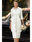 Tweedelig Strak kolom Tot de knie Bruiloft gast jurk Moeder van de bruid jurk 3/4 mouw Nek boot Elegant Vintage Grote maten Bruiloft gast Kerk (83 Chiffon Kant Jas Jurken met Appliqués