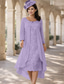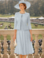 Tweedelig Strak kolom Tot de knie Bruiloft gast jurk Moeder van de bruid jurk 3/4 mouw Met sieraad Elegant Bruiloft gast Kerk (83 Chiffon Satijn Kant Korte Jas Jurken met Appliqués