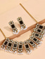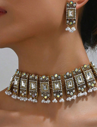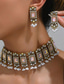 etnische stijl legering edelsteen ketting oorbellen 2-delige retro zware industrie parel franje hoofd sieraden