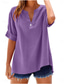Dames Katoen Linnen Blouse Zak Knopen Effen Basis Casual Korte Mouw Knip Neus Regular Tops Dagelijks Blauw Rood Paars Beige Zomer Lente