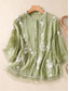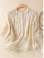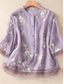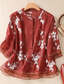 Dames Katoenen linnen overhemden Geborduurd Knop Bloemig Vintage Casual Lange mouw Hoge nek Normale tops Dagelijks Rood Paars Groen Abrikoos Zomer