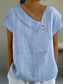Dames Katoenmengeling Blouse Knop Effen Basic Modern Casual Korte mouw V-hals Normale tops Feestdagen Uitgaan Wit Blozend Roze Groen Licht Blauw Zomer