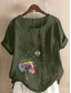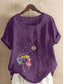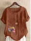 Dames Blouse Knop Afdrukken Bloemig Grafisch Vintage Casual Korte mouw Strakke ronde hals Normale tops Dagelijks Uitgaan Kastanjebruin Grasgroen Wit Paars Zomer Lente