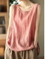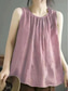 Dames Katoenen linnen overhemden Kampshirt Effen Kleur Basic Casual Mouwloos V-hals Normale tops Dagelijks Zwart Wit Blozend Roze Groen Grijs Zomer