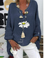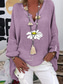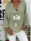Dames Katoenen linnen overhemden Afdrukken Madeliefje Basic Casual Lange mouw Overhemdkraag Normale tops Dagelijks Blozend Roze Marineblauw Paars Groen Zomer Herfst