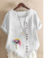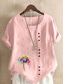 Dames katoen linnen blouse knopen print bloemen grafisch stijlvol casual korte mouwen ronde hals reguliere tops dagelijks uitgaan wit roze paars bruin groen zomer lente