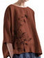 Dames Katoen Linnen Blouse Print Bloem Dagelijks Casual 3/4 Lengte Mouw Crew Neck Regular Tops Dagelijks Roze Bruin Zomer