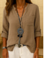 Dames Katoenen linnen overhemden Effen Kleur Basic Casual Lange mouw V-hals Normale tops Dagelijks blauw Blozend Roze Groen Grijs Zomer Lente Herfst