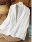 Dames Overhemd Katoenen linnen overhemden Blouse Effen Kleur Basic Casual 3/4 mouw Strakke ronde hals Normale tops Dagelijks Wit Zomer Lente