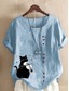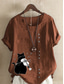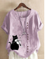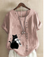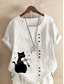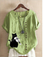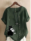 Dames Katoenen linnen overhemden Knop dier Kat Elegant Vintage Tropisch Korte mouw Strakke ronde hals Normale tops Dagelijks Feestdagen Vakantiekleding blauw Grasgroen Wit Geel Leger Groen Zomer Lente
