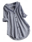 Vrouwen Katoen Linnen Shirt Knopen Effen Basis Casual Lange Mouw Ronde Hals Reguliere Tops Dagelijks Blauw Wit Paars Khaki Zomer