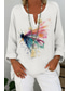 Dames Shirt Linnen Blouse Grafisch Vlinder Linnen Vintage Casual Korte Mouwen Ronde Hals Regelmatige Tops Dagelijks Uitgaansprint Wit Zomer Lente