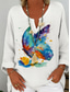 Dames Overhemd Grafisch Vlinder Abstract Elegant Bohemen Vintage Lange mouw V-hals Normale tops Dagelijks Feestdagen blauw Rood Groen Zomer Lente