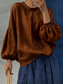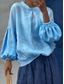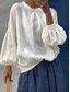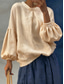 Dames Katoenen linnen overhemden Effen Kleur Effen Elegant Bohemen Vintage Lange mouw Pofmouw Normale tops Dagelijks Werk Feestdagen Kastanjebruin Wit Blozend Roze Hemelsblauw Abrikoos Zomer Lente
