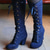 blauwe kniehoge veterlaarzen voor dames met blokhakken voor mode en vrijetijdskleding