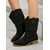 Zwarte gebreide winterlaarzen tot halverwege de kuit voor dames – warme instaplaarzen met sleehak voor koud weer en casual outfits
