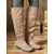 Beige kniehoge laarzen met blokhak van imitatiesuède voor dames, retro elegante wintermodeschoenen voor dagelijks gebruik, kantoor- en vintage feestoutfits