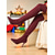 Rode dameslaarzen met rits aan de zijkant, blokhak en bloemenversiering – elegante winterlaarzen voor Kerstmis, feestdagen en formele gelegenheden