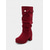 Rode suède slouch boots voor dames met gespdetail, stevige blokhak, stijlvol en comfortabel, perfect voor de winter, kerst en casual gelegenheden