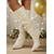 Witte dameslaarzen met blokhak tot de kuit, retrostijl en gerimpeld design - perfect voor wintermode en dagelijks gebruik